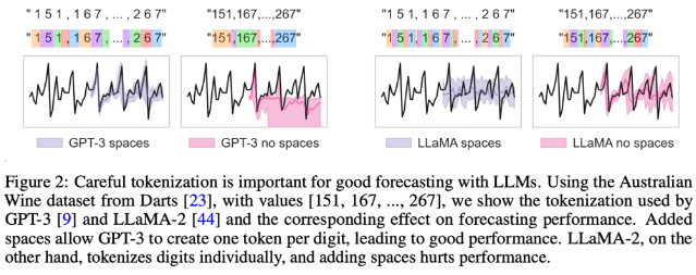 - 언어 모델은 수열에 대한 복잡한 확률 분포를 나타내도록 구축되었기 때문에 이론적으로 시계열 모델링에 잘 맞습니다. 그러나 실제로는 숫자의 토큰화에 관한 세부 사항에 의해 언어 모델의 성능이 제한됩니다. BPE는 훈련 데이터에서의 발생 빈도에 따라 숫자를 압축하기 때문에, 숫자들이 기본적인 수치 연산 학습을 어렵게 하는 어색한 청크로 분해될 수 있습니다.